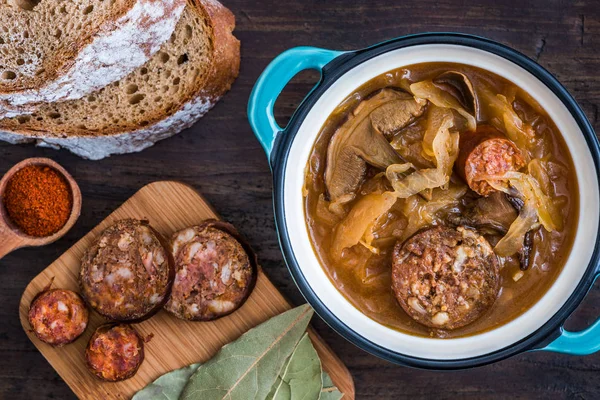 A leves régiónként eltérő lehet. Vannak, akik halászlét főznek, de a legtöbb területen a „Kapustnica”, vagyis a káposztaleves kerül az asztalra. A sűrű káposztalevesbe kerül kolbász, gomba, hús és tejszín, illetve van, aki aszalt szilvát is tesz bele. Kerül még az asztalra rántott hal, krumplisaláta, mézes-fokhagymás ostya, különféle sütemények, mákos guba (bobajka), lepények és még karácsonyi kalács is.
