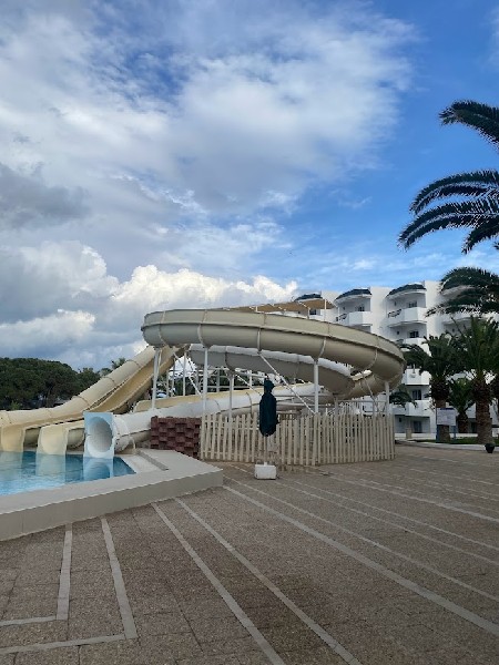 Egy éjszakát a One Resort El Mansour szállodában töltöttünk, ami nem egy luxus kategória, de olyan kis cuki és nagyon jó akciók szoktak rá lenni. Különleges a stílusa, nem minden szállodában találkozunk ilyennel, egyedi, lehet rá emlékezni! Egyszerű a berendezése, de szép a kertje, vannak medencéi, csúszdái és nagyon-nagyon szép a partja, lehet gyűjteni a kis kagylókat. 😊